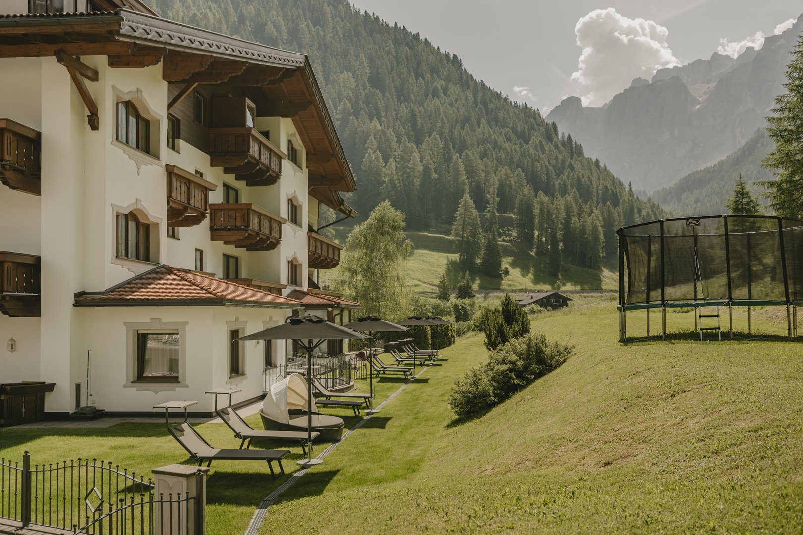 Die einzigartige Lage des Hotels am Dorfrand im Grünen, aber doch zentral und direkt angebunden an die beliebte Sellaronda: Ski in Ski out im Winter garantiert.