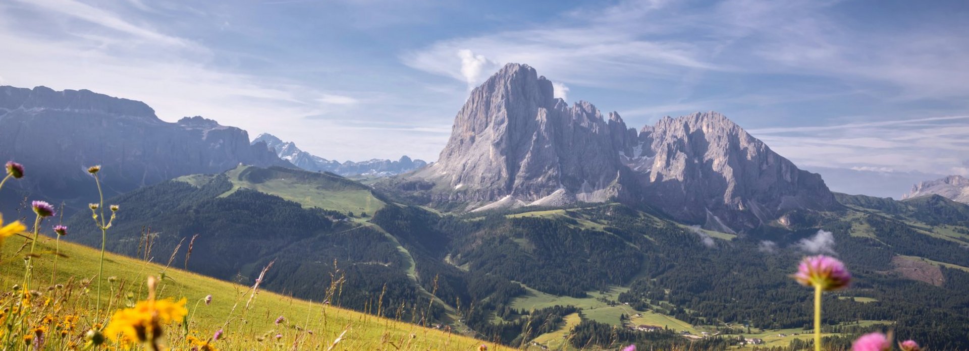 Erleben Sie die fantastische Bergwelt der Dolomiten. Im Juni blühen eine Vielzahl von Almblumen auf den Bergwiesen im Grödnertal. Eine herrliche Kulisse zum Wandern, E-Mountainbiken und Landschaft genießen. Unser Opening Special lädt zu unvergesslichen Momenten in der frühsommerlichen Natur.
