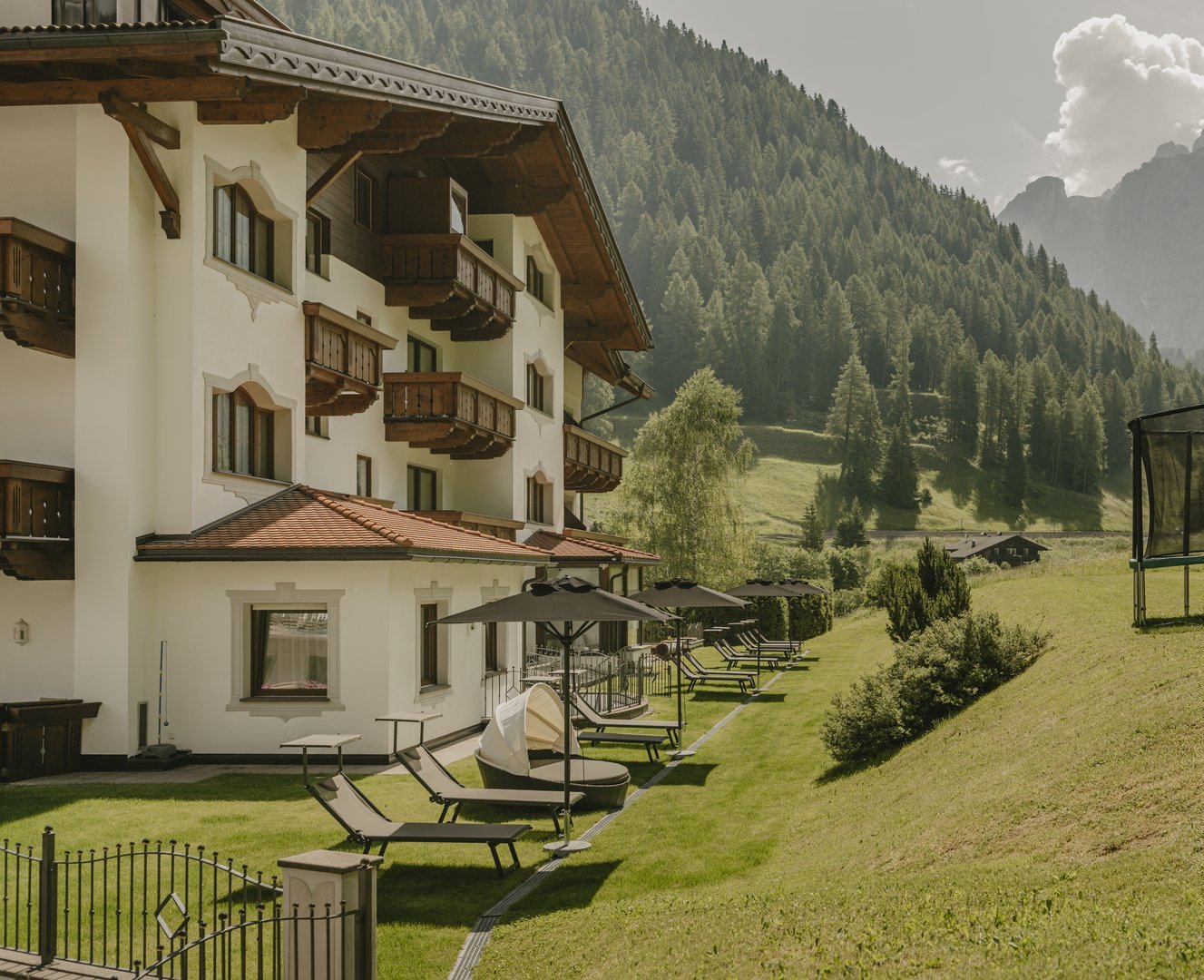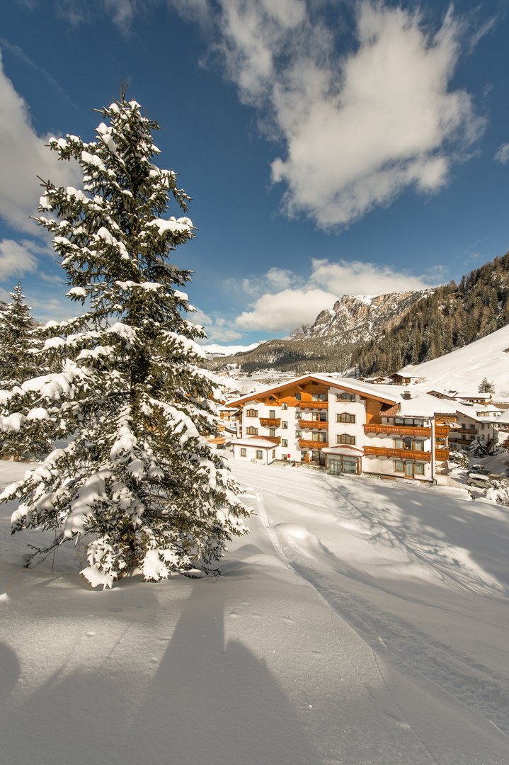 The hotel’s unique location at the edge of the village amidst greenery—yet central and directly connected to the famed Sellaronda—means ski-in/ski-out is guaranteed in winter.